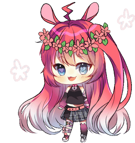 Flashyklau, a cute anime girl with pink hair and a flower crown, dances playfully as an animated emote.
