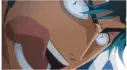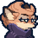 Animated pixel art sticker of a fox-like character from Fleet Rivals 2, wearing glasses and a purple top.