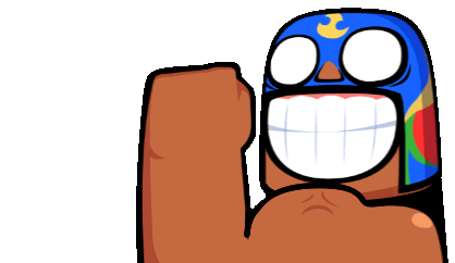 El Primo from Brawl Stars flexes his bicep with a huge smile and twinkling eyes, showing excitement and strength.