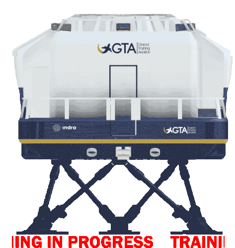 An animated sticker of a B737 flight simulator with 'Training In Progress' text, showcasing aviation education.