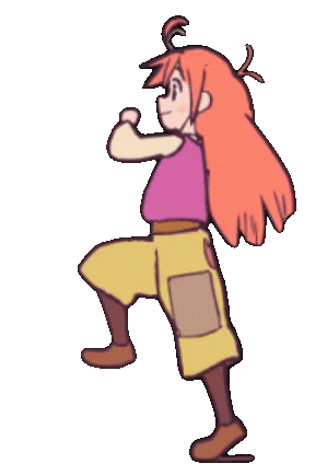 Papika from Flip Flappers runs with energy, her long red hair bouncing. A vibrant animated sticker.
