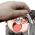 Kemono Friends Silver Fox character, Flip Pat, doing a fliptrip with a donut in her mouth and a hat.