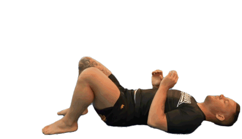 Jordan Preisinger demonstrates a BJJ hip escape solo drill, rolling 180 degrees on the mat to practice fundamental movement.