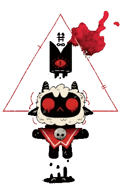 The Lamb and The One Who Waits from Cult of the Lamb, depicted in a pixel art style, floating within a red triangle.
