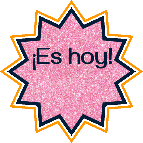 A woman points up excitedly inside a glittery star, announcing "¡Es hoy!" (It's today!). Perfect for celebrations.
