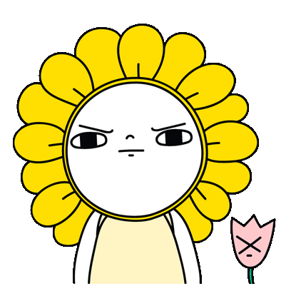 A cute cartoon sunflower character with yellow petals and a stern expression crosses its arms, saying 'NO' emphatically.
