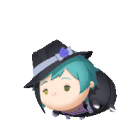 Floyd Leech from Twisted Wonderland in a cute Tsum Tsum style, wearing a black hat with a purple rose.