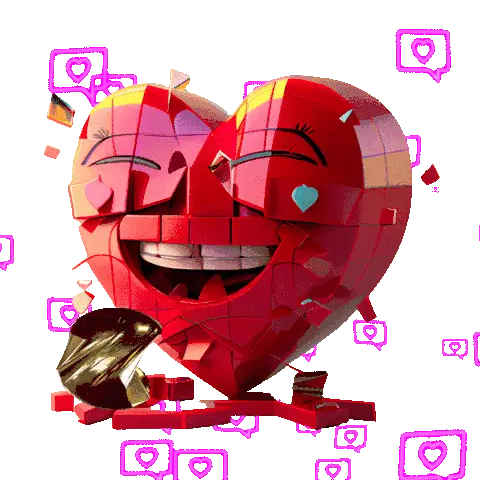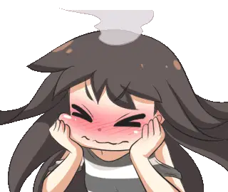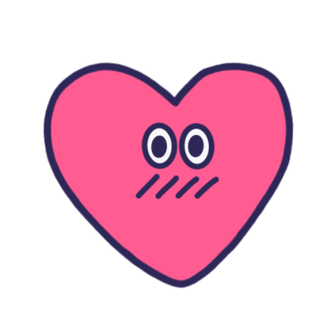 A cute pink heart sticker with wide eyes and blush lines, conveying shyness, embarrassment, and a blissful, flattered feeling.