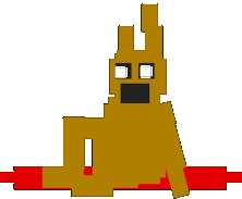 A pixel art FNAF character, like Bonnie, screams 'Ahhhh' in a classic jumpscare, evoking the horror of the game and characters such as Purple Guy.