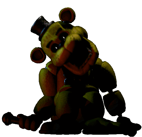Animated Fnaf Fredbear sitting, wearing a top hat, with its mouth opening and closing in a spooky jumpscare.