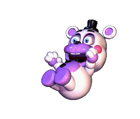 Helpy, the white and purple animatronic from Fnaf, giggles with a small top hat.