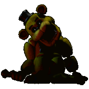 Golden Freddy, the iconic animatronic from FNaF, sits slumped with a top hat, perfect for a spooky meme sticker.