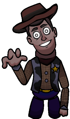 FNAF Woody in an idle animation, a stylized cowboy character with a yellow star badge, from the Five Nights at Freddy's universe.