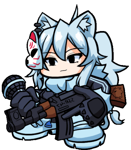 Botan from FNF (Friday Night Funkin') animated, holding a large gun. A fierce and ready cartoon character.