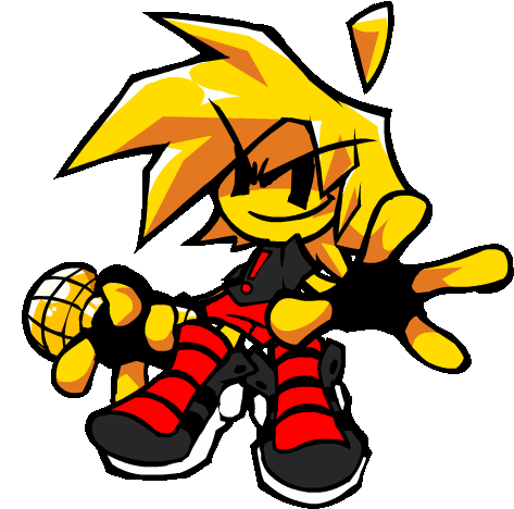 An animated sticker of FNF Minus Golden BF, a cartoon character holding a microphone and wearing cool sunglasses.