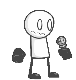 A black and white Fnf character drops their microphone, then transforms with a cracked head, holding candy-like objects.