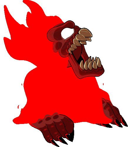 Animated sticker of Tricky The Clown from FNF, a monstrous red clown with green hair and sharp teeth, moving aggressively.