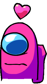 A cute pink Among Us character from Fnf Vs Impostor V4 with a floating pink heart, expressing love or affection.