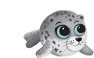 Foca Flora, a adorável foca do Bando Do Mar, com seus grandes olhos expressivos e manchas cinzentas.