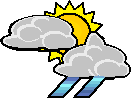 Animated pixel art weather icon by Foekoe Foekoe Gaming, depicting a sunny sky with scattered rain showers.