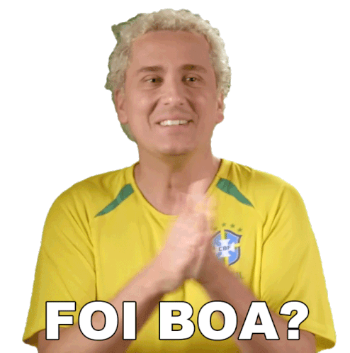 Rafael Portugal claps his hands and asks "Foi Boa?" (Was it good?) with a questioning expression.