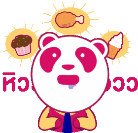 The Foodpanda mascot looks hungry, drooling while dreaming of a chicken drumstick, cupcake, and ice cream.