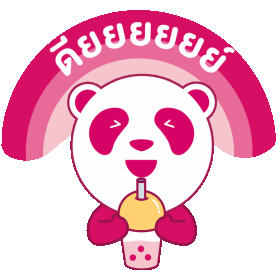 Foodpanda panda happily drinks bubble tea under a rainbow, exclaiming 'Sooooo good!' A cute and positive sticker.