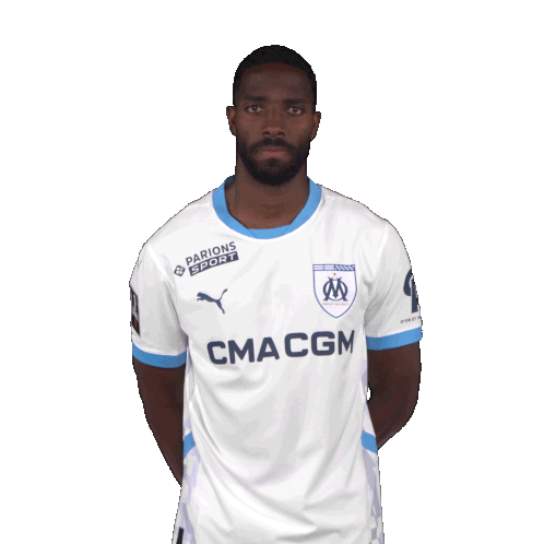 Ulisses Garcia, wearing an Olympique de Marseille football jersey, makes a forward-pointing gesture.