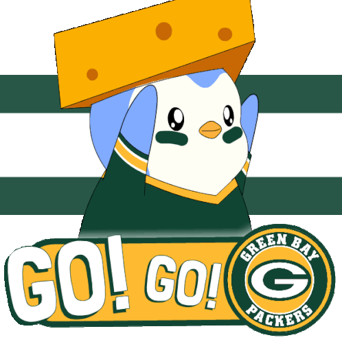 a green bay packers logo with a penguin wearing a yellow box on its head