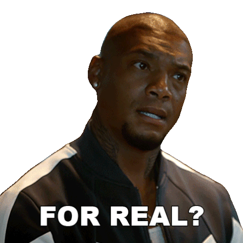 Dominiq Mayfield asks 'For Real?' with a questioning look, expressing disbelief or surprise.