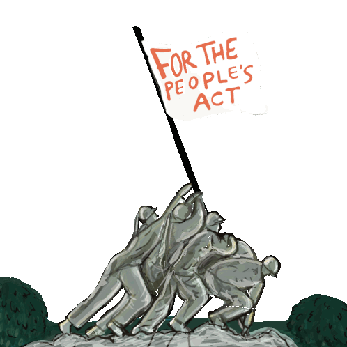 Animated sticker depicting the Iwo Jima monument raising a flag for the "For The People's Act" (HR1).