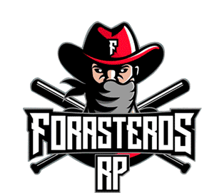 Animated sticker of the Forasteros RP logo, featuring a masked cowboy character with a hat and crossed baseball bats.