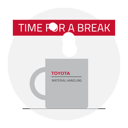A Toyota Material Handling mug with steam rising, accompanied by the message 'Time for a Break'.