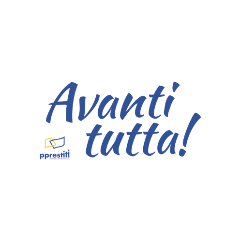 Animated sticker featuring the Italian phrase 'Avanti tutta!' (Full speed ahead!) and the 'pprestiti' logo.