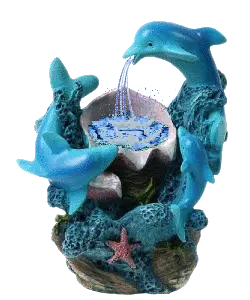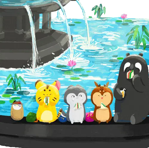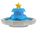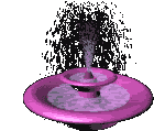 A pixelated animated sticker of a pink, multi-tiered fountain with water sprinkling and cascading down its levels.