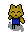 A charming pixel art fox character, possibly a cat, wearing blue overalls and walking. A cute 2D animated sticker.