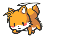 Adorable chibi Tails, the fox from Sonic, flies with his twin tails, showing a cute blush. A charming Sega character sticker.