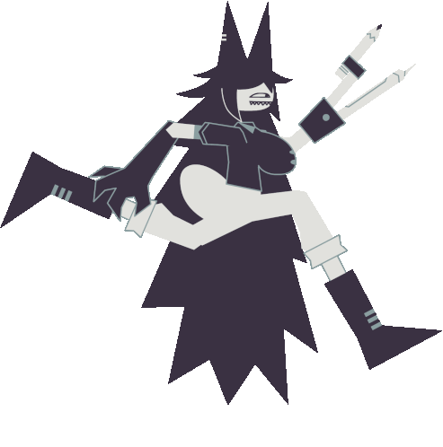 a black and white drawing of a witch with a pencil in her hand