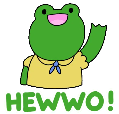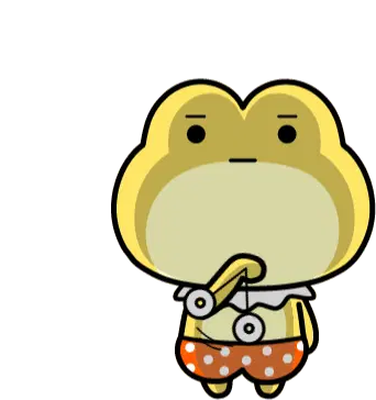 Franky the frog stares intently with wide eyes, then blinks slowly in this expressive animated sticker.