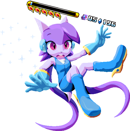 Sash Lilac, the dragon-like protagonist from the game Freedom Planet, in an animated sticker.