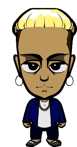 Animated sticker of Freesis Mafia, also known as Huda Laamarti, a hip-hop artist from Madrid, in a stylized cartoon form.
