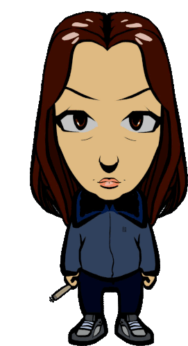 Freesis Mafia's Laura Siyahamba cartoon, a hiphop rap character with long hair holding a cigarette.