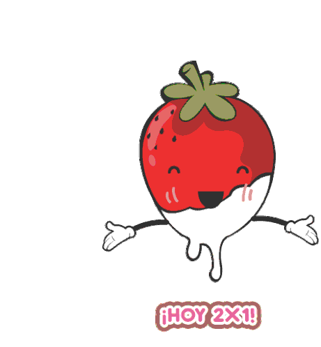 A happy strawberry dipped in white chocolate with '¡HOY 2X1!' text, perfect for promotions.