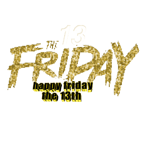 An animated sticker wishing 'Happy Friday the 13th', featuring stylized text on a clean white background.