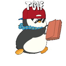 A cool penguin in a hat, sunglasses, and lei celebrates TGIF, ready for a fun-filled happy Friday and weekend.
