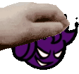 Animated sticker featuring the purple Void character from the popular rhythm game Friday Night Funkin (Fnf), held by a hand.