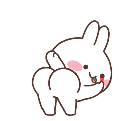 A cute white bunny playfully slaps its butt, sticking out its tongue in a friendly, mischievous insult or joke.