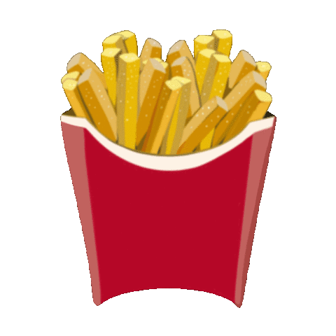 An animated sticker featuring a vibrant red carton filled with golden, crispy french fries, sprinkled with salt.
