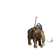 An animated pixel art sticker featuring a Frostlings Mammoth unit from the game Age of Wonders 2, ridden by an armored warrior.
