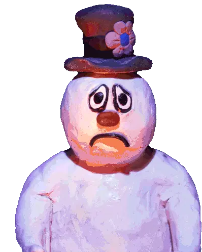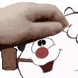 Pixel art sticker of Frosty The Snowman, gently being pet on the head, showing a cute, bobbing motion.